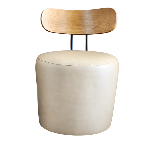 Puff Poltrona Vênus Redondo com Encosto de Madeira Veludo Bege - Harmônica Bege