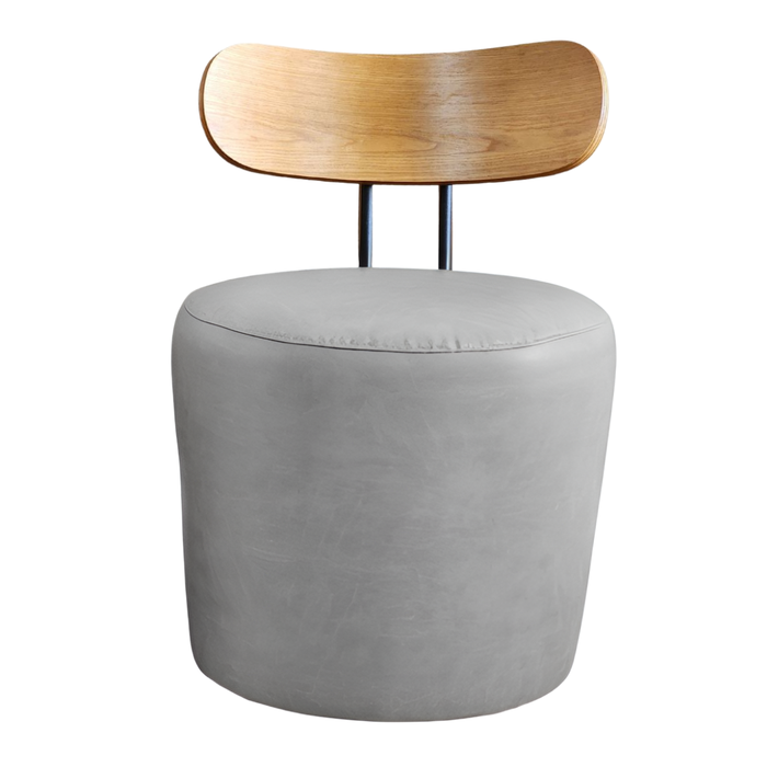 Puff Poltrona Vênus Redondo com Encosto de Madeira Veludo Cinza - Harmônica
