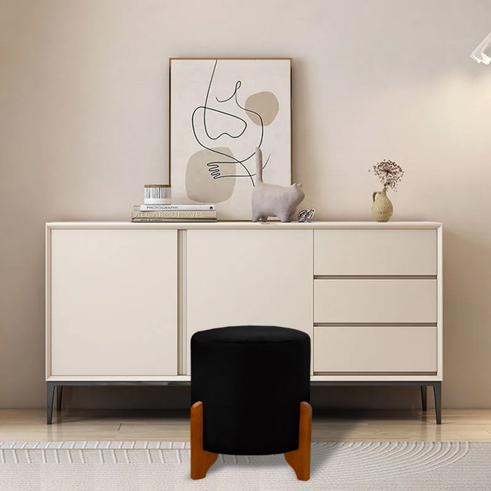 Puff Principe Thor Tecido Veludo Pes de Madeira:preto