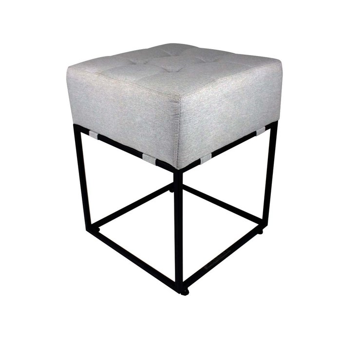 Puff Quadrado Estilo Industrial Alto para Sala em Linho - Bege Claro