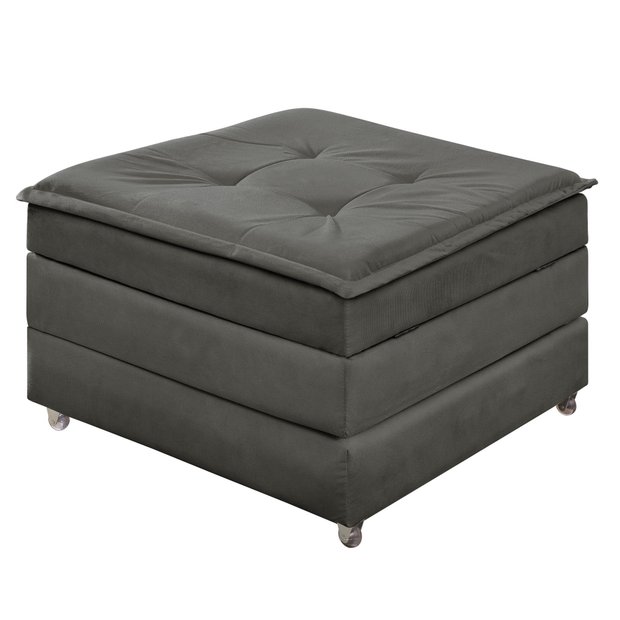 Ver mais imagens de Puff que Vira Cama Solteiro Cinza com Rodízios e Bau Espuma D23