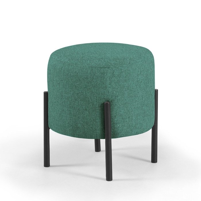 Puff Redondo Liverpool de Linho Pés de Ferro - Verde Verde