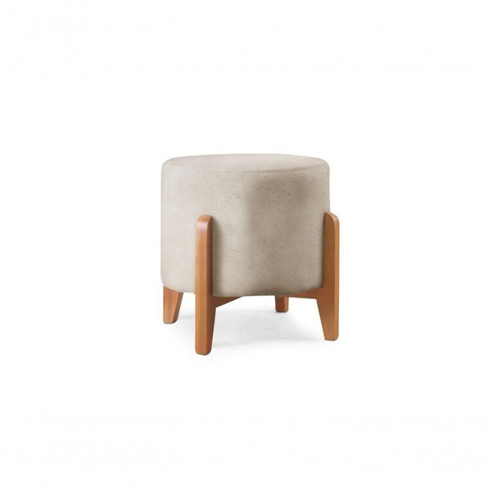 Puff Redondo para Sala Pé de Madeira Linho Nude 100