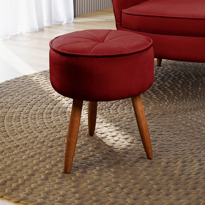 Puff Redondo Para Sala Pé Palito Ariel Petala - Star Confort Puff Ariel Redondo Veludo Vinho 1705