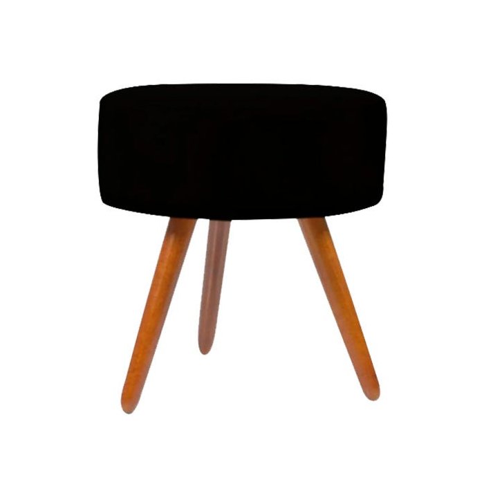 Puff Redondo Pé Palito Preto Suede Triangulo 3 Pés Palitos
