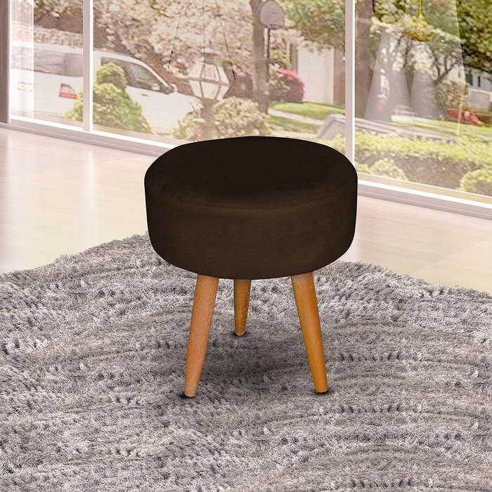 Puff Redondo Pé Palito Suede Marrom - Ninho Decor