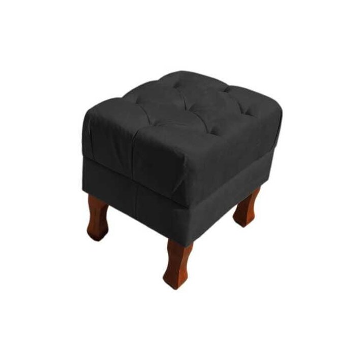 Puff Decorativo Retrô Luis XV Suede Preto - Fina Mobília