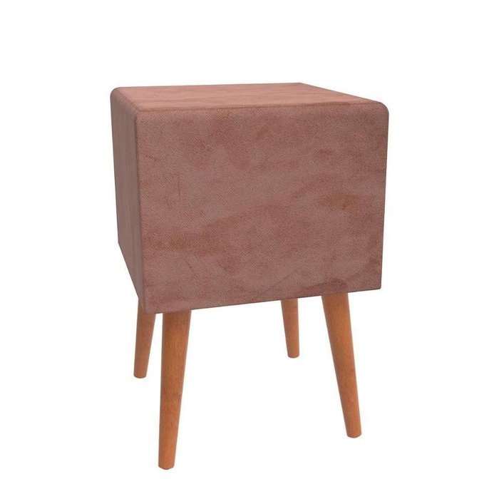 Puff Steve Quadrado Pés Palito Decorativo Premium Rosa