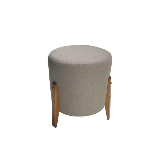 Puff Redondo Estofado com Pés de Madeira