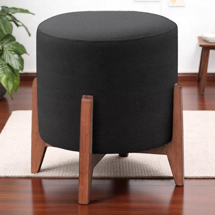 Puff Thor 3 Pés Veludo Preto Base em Madeira Maciça - Fri Varejo