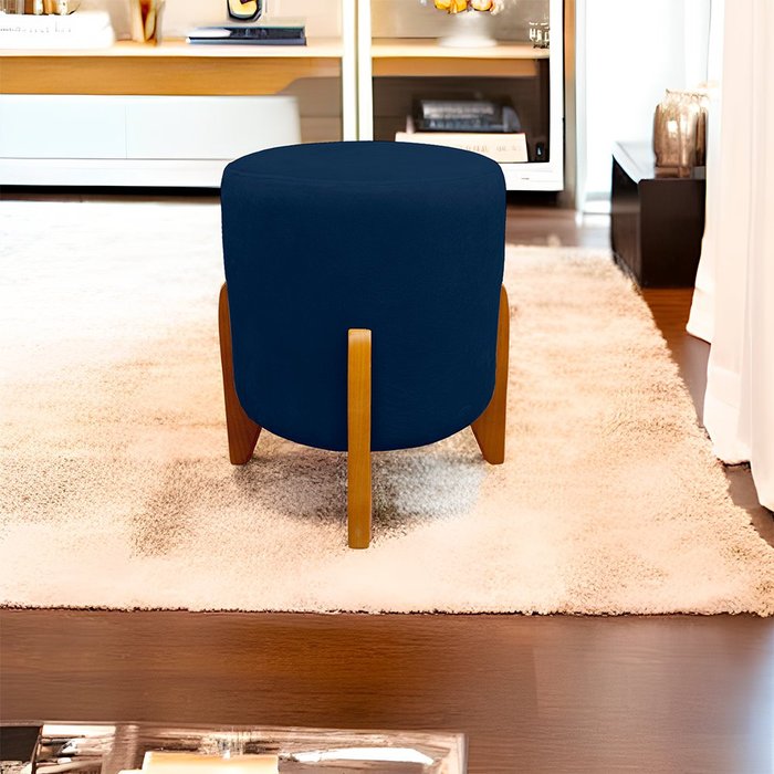 Puff Thor Redondo para Sala e Quarto Veludo Azul Marinho - W&D Decor Azul Marinho