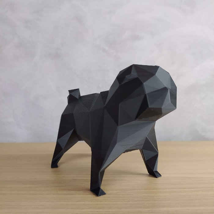 Pug Geométrico Decorativo Tamanho Médio Dimensões: Possuí 7,5 cm de largura por 15 cm de profundidade e 11cm de altura Material: O material é o PLA (poliácido láctico), derivado da cana de açúcar ou amido de milho, diferente dos plásticos tradicionais, que são derivados do petróleo. É 100% biodegradável e não tóxico. Produção: Os nossos produtos são produzidos com inovador método de impressão 3D. Cuidados e Conservação: Para limpeza utilize um pano úmido. Caso sejam expostas a altas temperatura ou diretamente ao sol por longo períodos as peças podem sofrer alterações. As peças não devem ser lavadas com sabonetes, detergentes, ou produtos similares. Evitar contato com cremes, pomadas ou produtos similares. Se comprovado defeito de fabricação a peça será substituída. by mauriciofillmann