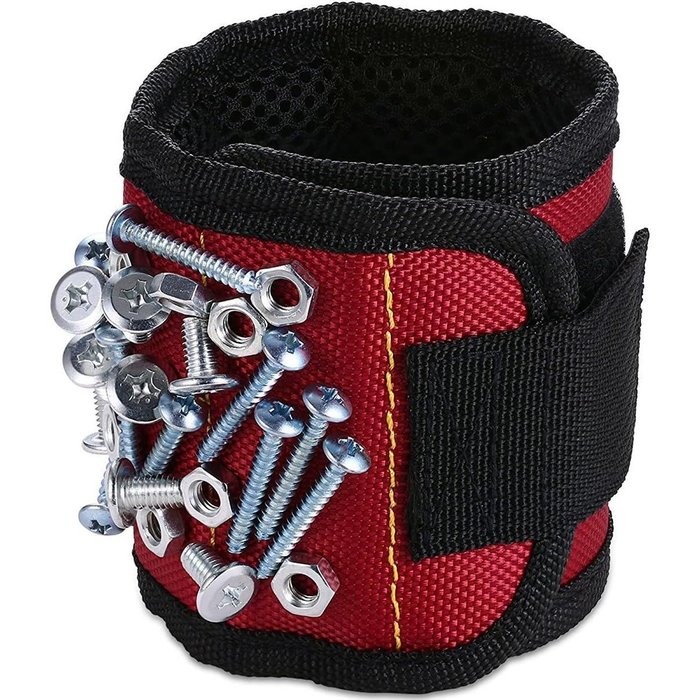Pulseira Ima Magnetico Segura Prego Parafuso Broca Ferramenta Obra Reparo Construçao Bracelete Organ Vermelho