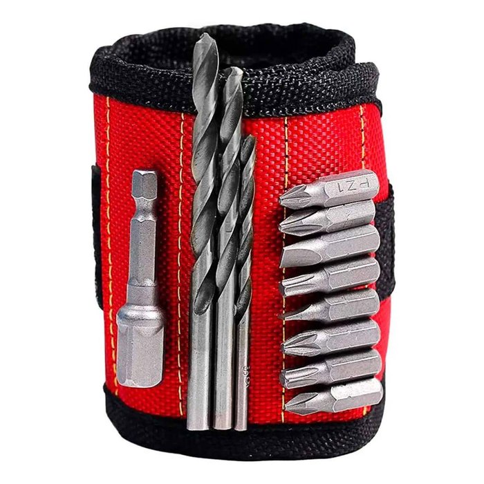 Pulseira Magnetica Ima Segura Prego Parafuso Agulha Broca Pino Bracelete Ferramenta Eletricista Obra Vermelho