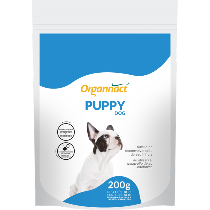 Suplemento mineral vitamínico aminoácido para filhotes antes, durante e após a desmama. A sua fórmula contém vitaminas, aminoácidos e minerais que complementam os nutrientes importantes nesta fase adaptativa do filhote. Composição básica Selenito de sódio, aditivo flavorizante, aditivo antioxidante, histidina, óxido de manganês, vitamina E, dextrose, sulfato de ferro, valina, vitamina B1, serina, sulfato de cobre, prolina, proteína texturizada de soja, tirosina, vitamina D3, arginina, iodato de potássio, isoleucina, L-lisina, leucina, vitamina A, óxido de zinco, treonina, triptofano, DL-metionina, ácido pantotênico, vitamina B12 – 0,1%, sulfato de cobalto, glicina, cistina, vitamina B6, ácido fólico, vitamina B2, vitamina K3, niacina, biotina, cloreto de colina. Modo de usar Raças de pequeno porte (até 10kg): 1g duas vezes ao dia; Raças de médio porte (de 10 a 25kg): 2g duas vezes ao dia; Raças de grande porte e gigantes (acima de 25kg): 3g duas vezes ao dia. Polvilhar sobre a ração. Embalagem contendo colher dosadora. Apresentação 200g.
