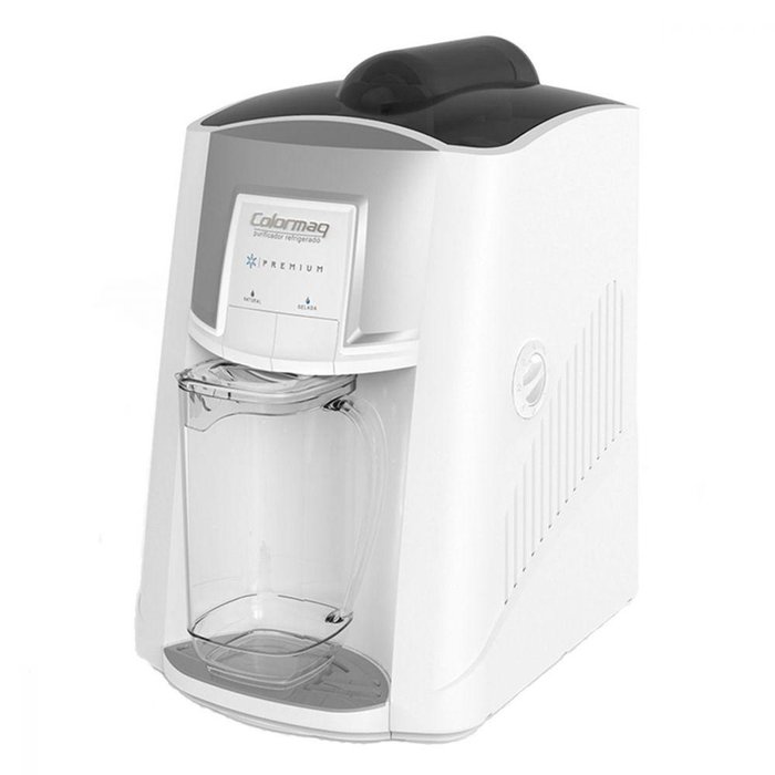 Purificador De Água Gelada Colormaq Premium Branco Compressor -220vPurificador de Água Gelada Colormaq Premium Branco Compressor O Purificador de Água Gelada Colormaq Premium, proporciona alta qualidade de filtração, retendo impurezas sólidas, removendo cloro e reduzindo gostos e cheiros através de um elemento filtrante (filtro) de tripla filtração, e de troca fácil (você mesmo pode fazer a troca do refil, sem necessidade de chamar um técnico). Além disso, possui excelente sistema de refrigeração por compressor, entregando até 2,3 litros de água gelada por hora, uma das maiores capacidades de refrigeração do mercado. E o melhor de tudo, tudo isso gastando pouca luz! O produto possui excelente eficiência energética, consumindo pouca energia.Cor