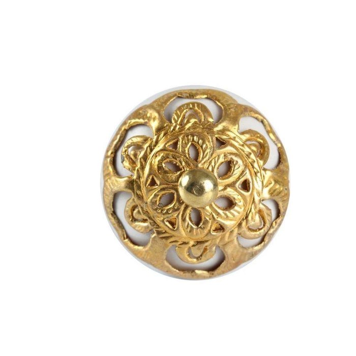 Puxador Cerâmica Branca com Detalhe em Dourado