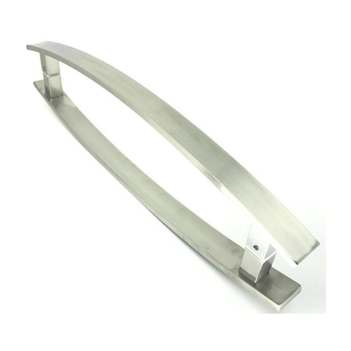 Puxador Curvo Inox Porta Pivotante Madeira e Vidro Escovado:80 Cm escovado