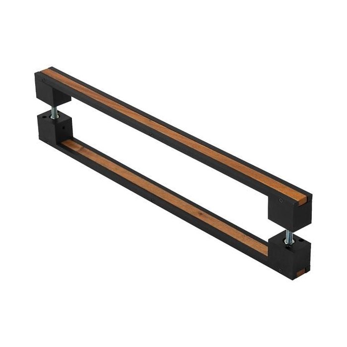 Puxador de Porta de Entrada Preto Fosco com Madeira 60cm Preto Fosco