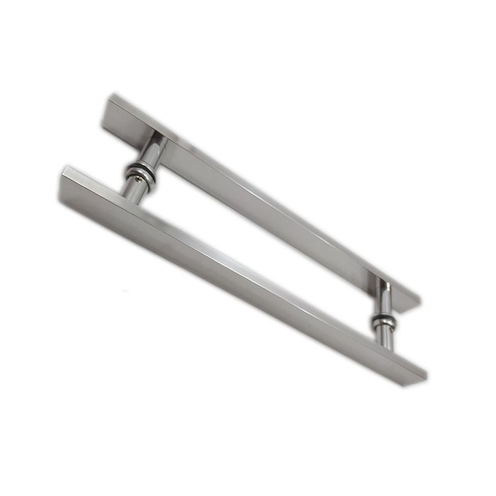 Puxador H duplo 40x30cm reto barra chata para porta de vidro e portão - Cromado Cromado