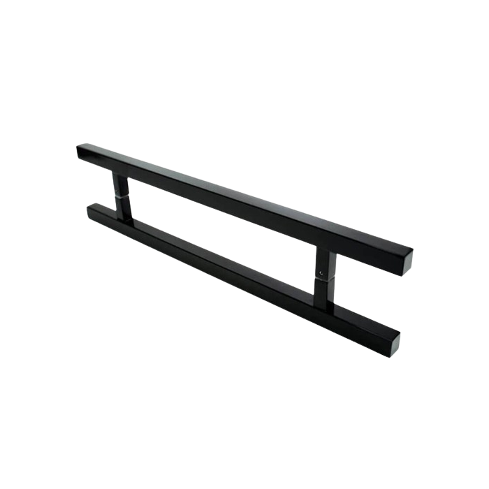 Puxador para portas fabricado em aço inox preto fosco, resistente a água e luz solar.