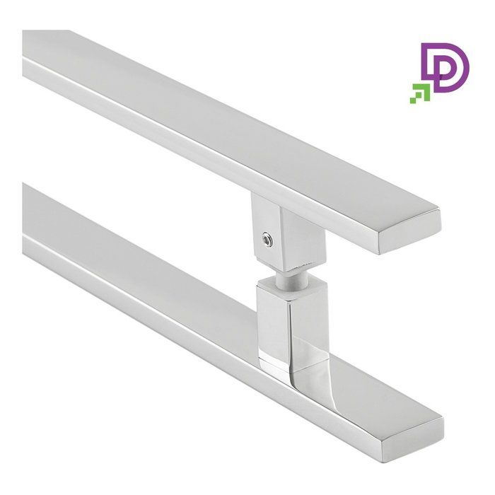 Puxador Porta Duplo Em Aço Inox 75cm Modelo Flat Economy:Polido