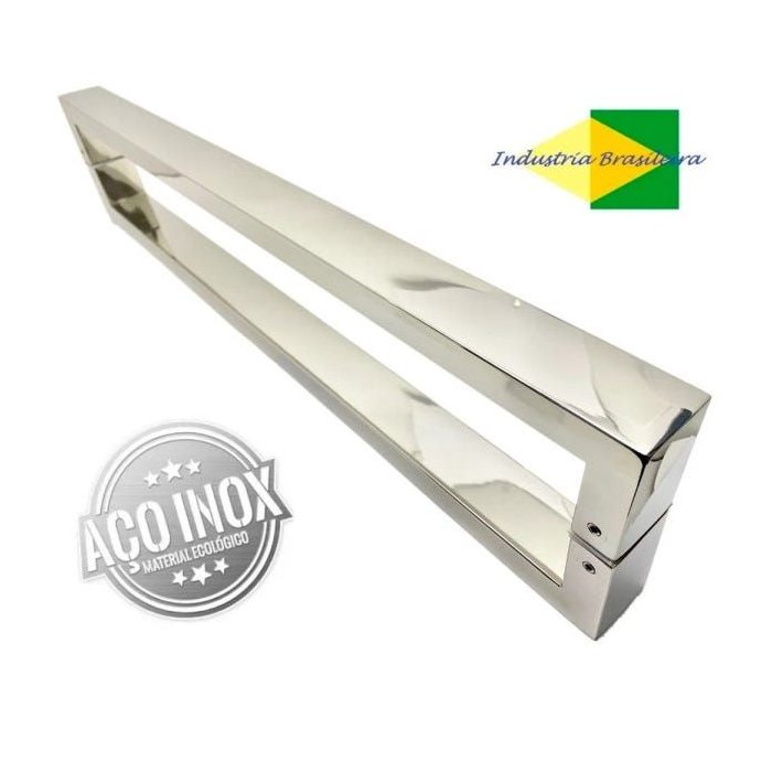 Puxador Quadrado Plano duplo para porta.Descrição Técnica:Material: Aço Inox 304Medidas disponíveis: 40cm, 60cm, 80cm, 1 metro, 1.20mt, 1.50mt e 1.80mt.Acabamento: aço inox polido.Medida do perfil : 40mm largura x 20mm alturaAltura dos pés: 40mm*Acompanha chave allen e parafusos para fixação.*Acompanha manual de instação contendo todas as informações necessárias.*Puxador adequado para vários tipos de portas: comum de madeira, vidro temperado, esquadrias de alumínio e aço.*Resistente a luz solar e a água.*Puxador duplo, ou seja, vendidos para os dois lados da porta (PAR).