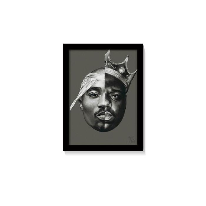Quadro Decorativo 2Pac e Notorious BIG Art Poster Moldura Vidro