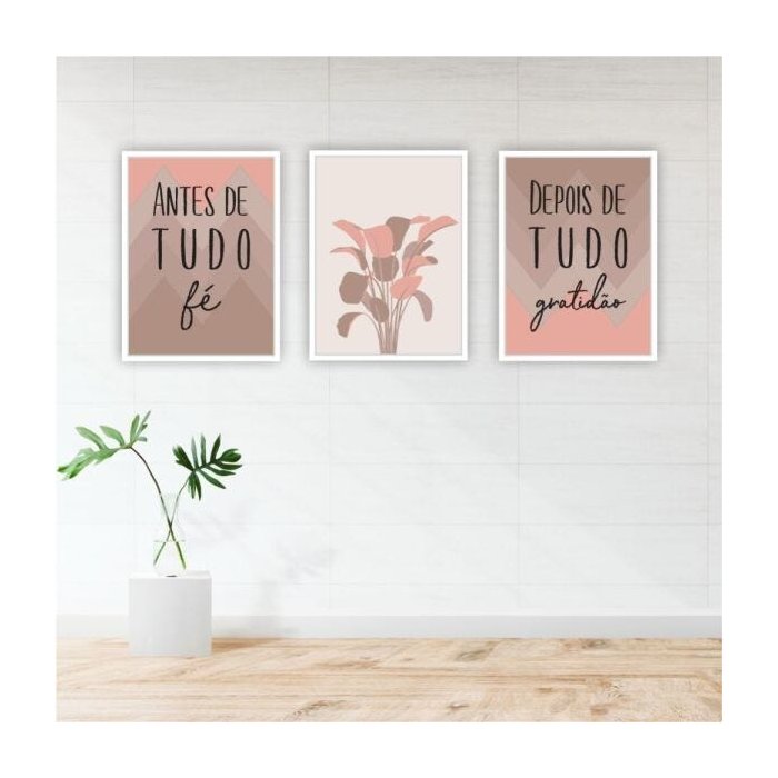 QUADRO 40X30CM 3PÇS ANTES DE TUDO - ROSA MOLD VIDR