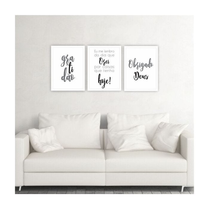 QUADRO 40X30CM 3PÇS FÉ, DEUS E GRATIDÃO - PRETO MO