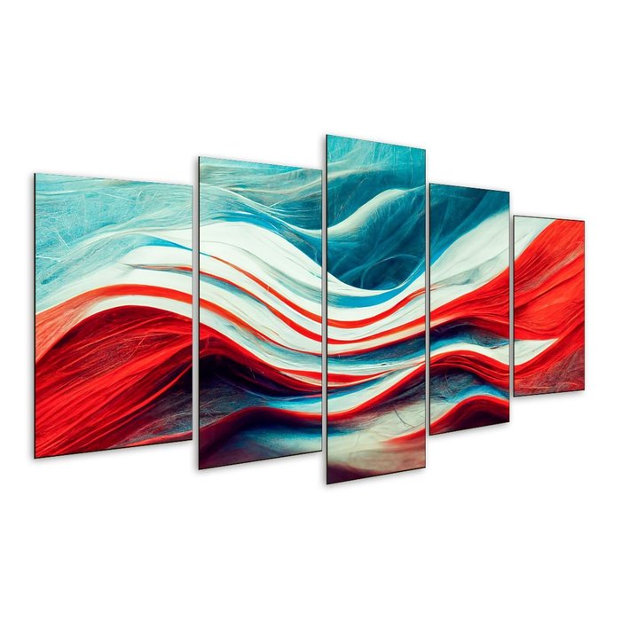 Quadro 5 Peças Abstrato Abstract Realismo Vermelho Mosaico