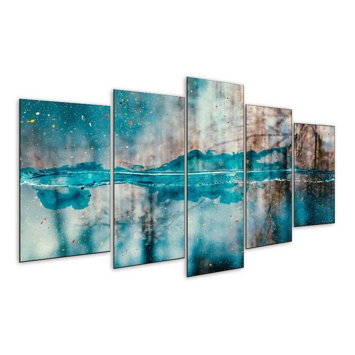 Quadro 5 Peças Oceano Mar Estilo Pintura Paisagem Mosaico