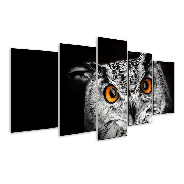 Quadro 5 Peças Olhar da Coruja Pássaro Animal Asas Mosaico