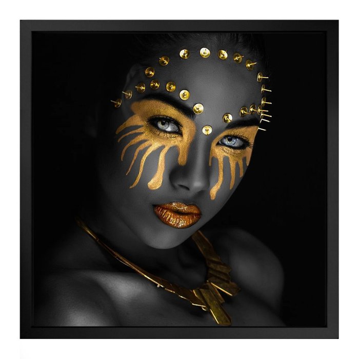 Quadro 50cm X 50cm Face Mulher Dourada Tropical Artes Preto