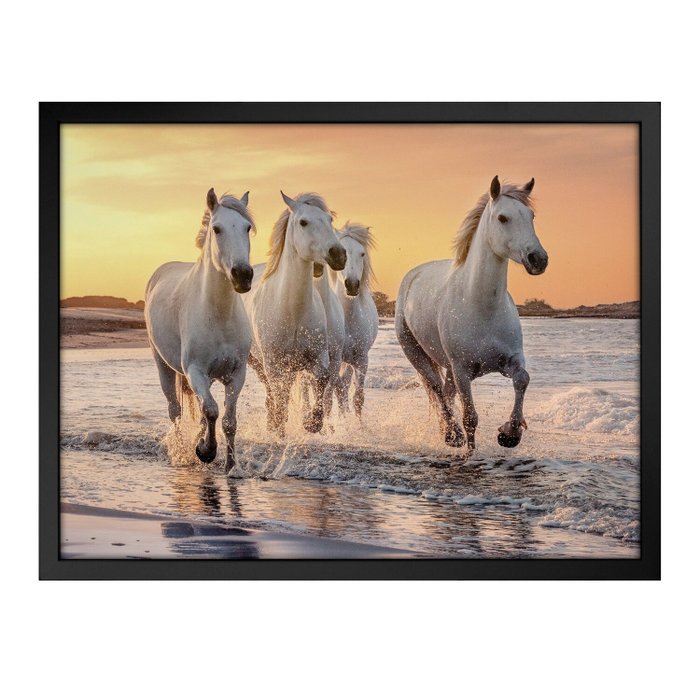 Quadro 60cm X 80cm Quatro Cavalos Brancos Tropical Artes Preto
