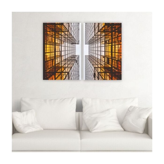 QUADRO 60X40CM 2PÇS PRÉDIO ESPELHADO LONA FOSCA
