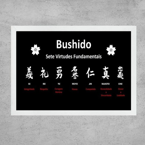 Quadro 7 Virtudes Fundamentais - Bushido 24x18cm:moldura Branca Moldura branca