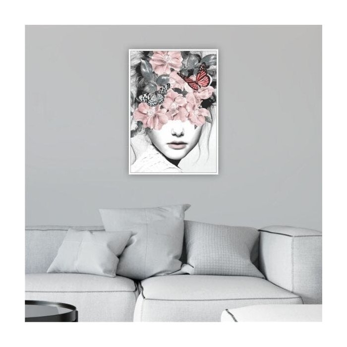 Quadro 70x50 Mulher com Borboleta Moldura Canvas
