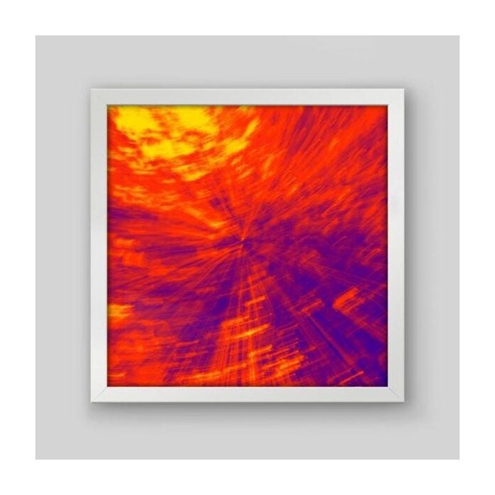 Quadro Abastrato Céu em Crepúsculo Avermelhado - 40x40cm - Moldura Caixa Branco