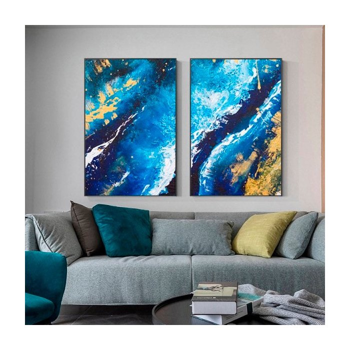 Quadro Abstrato Azul Luxury - Kit 2 telas - 90 x 60 cm - Preta