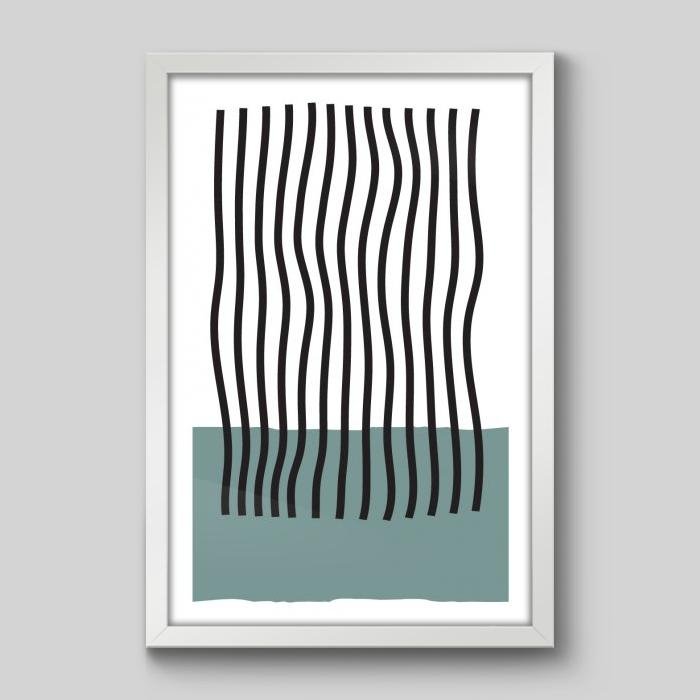Quadro Abstrato Barrado Verde - 60x40cm - Moldura Padrão Branco