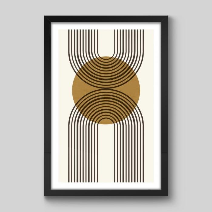 Quadro Abstrato Central Sol - 45x30cm - Moldura Padrão Preto