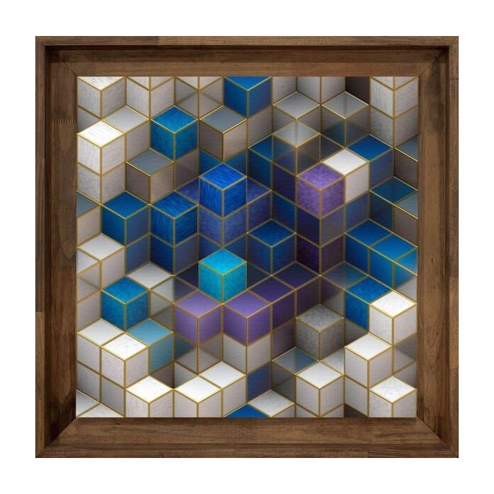 Quadro Abstrato Geométrico Tela com Moldura Rústica 90x90cm