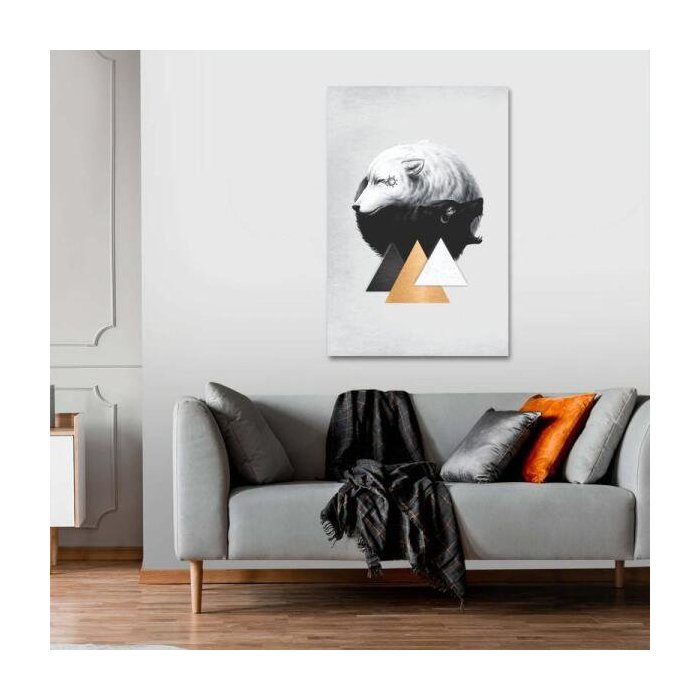 Quadro Abstrato Lobos Yin Yang Geométrico Moderno Em Tecido