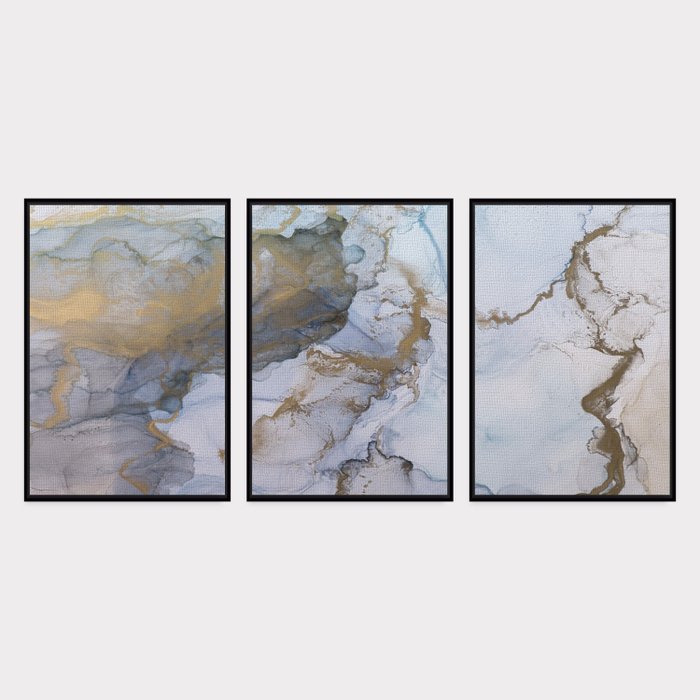 Quadro Abstrato Mármore Grande Para Sala Decorativos - KIT COM 3 QUADROS DE 120 X 80 CM CADA - MOLDU