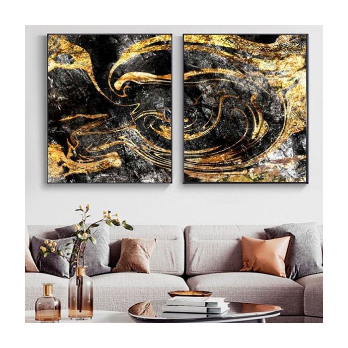 Quadro Abstrato Master Luxo Preto e Dourado - Kit 2 telas - 60 x 40 cm - Branca