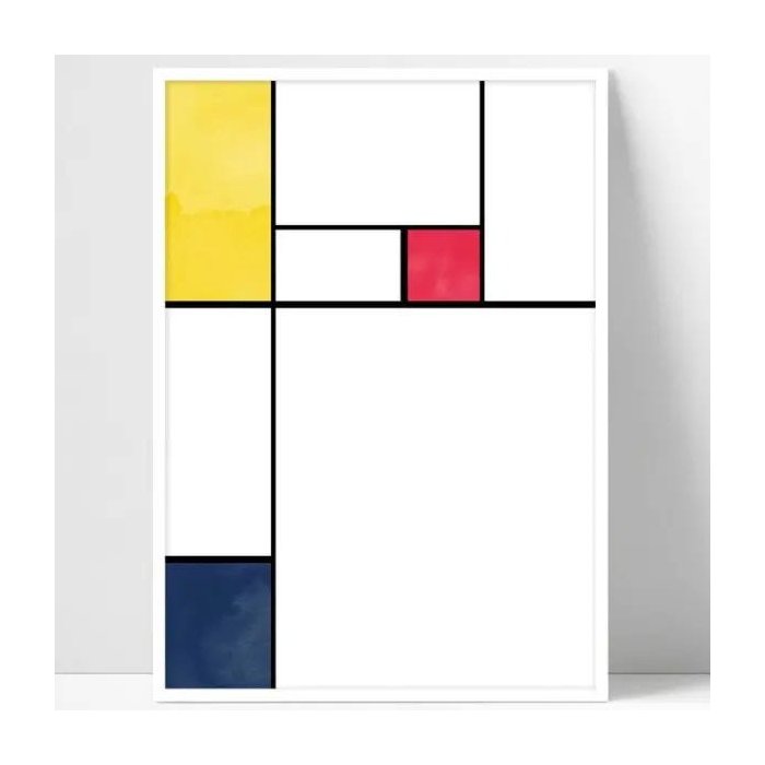 Quadro decorativo com moldura laqueada, quadro abstrato moderno geométricos quadrados coloridos.