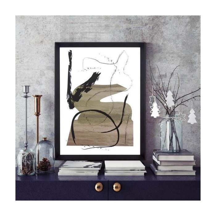 Quadro decorativo abstrato moderno. Quando com moldura preta chanfrada