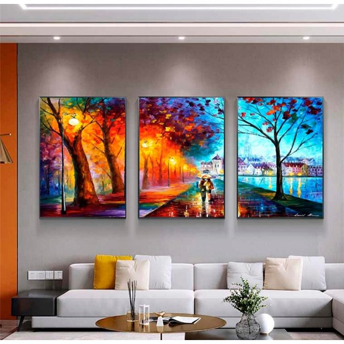 Quadros de qualidade diferenciada, com tecido canvas, acabamento perfeito, e entrega rápida! Por isso, a Decor Arte RJ possui uma gama muito rica e diversificada de quadros decorativos para dar aquele toque especial em qualquer área da sua casa ou do seu local de trabalho. Transforme com quadros para sala, quadros para quarto, quadros para cozinha, quadros para área gourmet, quadros para escritório de forma moderna e elegante. É a sua forma mais prática de personalizar e decorar! MEDIDAS DISPONÍVEIS 3 quadros de 60 x 40 cm. (medida de cada quadro) 3 quadros de 90 x 60 cm. (medida de cada quadro) 3 quadros de 120 x 90 cm. (medida de cada quadro) 3 quadros de 150 x 100 cm. (medida de cada quadro) PERGUNTAS FREQUENTES Procuramos manter atualizações constantes para que possamos sempre aprimorar nossa comunicação com você. Por isso, separamos algumas das perguntas mais corriqueiras, a seguir. Se ainda possuir dúvidas, não se preocupe: nossa equipe de atendimento estará sempre pronta para te ajudar! 1. O quadro decorativo é pintado à mão? Não. Apesar de ser utilizado o mesmo tecido de obras de artes museológicas, o quadro é impresso em impressoras modernas de alta resolução sobre o tecido canvas. 2. O quadro possui vidro? Não. Os quadros produzidos pela Decor Arte RJ tem a proposta de serem telas de pintura. Geralmente os vidros são usados para proteger quadros que usam fotografias e, como usamos telas impressas, a durabilidade do material é infinitamente maior, não precisando ser protegida por vidro. 3. Como é realizada a fixação dos quadros nas paredes? Todos os quadros da Decor Arte RJ seguem com pendurador.. Com o auxílio de um martelo, deve-se fixar um prego ou parafuso na parede e fixar a central superior no pendurador. 4. Quais são os cuidados que devo tomar com o quadro? Deve-se evitar a exposição direta e constante à luz solar e contato com paredes úmidas. Não coloque peso sobre o produto ou empilhe, pois isso poderá deformar sua tela; Não apoie objetos de ponta ou pesados ao produto para que não haja perfuração ou deformação do tecido. 5. Como posso realizar a limpeza do quadro? Somente com espanador ou pano seco (sem esfregar). Não utilizar quaisquer produtos de limpeza. 6. Quais são as medidas? Cada modelo oferece opções de medidas próprias. Todas as medidas são discriminadas, no menu que fica logo abaixo do título do quadro (onde é obrigatório o cliente selecionar o tamanho desejado para compra)e na imagem do tópico “MEDIDA” (que consta no início da descrição do produto). 7. O chassi de madeira é resistente? Sim. A Decor Arte RJ utiliza apenas materiais que, se tomados os devidos cuidados de conservação, fornecem uma alta durabilidade. A estrutura é de madeira pinus leve, nova e tratada. 8. Preciso emoldurar o quadro após a compra? Não. Basta fixar o quadro seguindo os procedimentos do tópico 2 das “Perguntas Frequentes”. 9. Me arrependi! Quero trocar o quadro. O que devo fazer? Para estes casos, há uma página específica com todas as políticas de trocas e devoluções. ;) MATERIAL Os quadros decorativos produzidos pela Decor Arte RJ são impressos em tecidos canvas por impressoras modernas de seis cores,no padrão fotográfico, e cuidadosamente esticados e grampeados em chassis de madeira.O tecido canvas é o mesmo tecido utilizado por artistas e pintores para criação de obras de arte (quadros pintados à mão). Ele possui alta gramatura (tecido grosso), uma característica própria de sua trama, o que proporciona resistência, durabilidade e uma textura única e elegante. Para dar um acabamento perfeito ao seu quadro, que cubra os grampos e que não danifique sua parede,o tecido é arrematado com fita kraft. ACABAMENTOS E DETALHES (TIPOS DE ACABAMENTOS) Este modelo pode ser adquirido em três opções de acabamentos: - Chassi madeira: tecido esticado em chassi de madeira de 2 cm de espessura. As laterais são preenchidas com a extensão da própria imagem, cobrindo, assim, o chassi de madeira (deixando-o oculto na parte de trás) dando um aspecto clean e, ao mesmo tempo, concedendo profundidade para a arte. - Moldura preta ou branca : trata-se do mesmo quadro de chassi em madeira, porém com o acréscimo da moldura. Esta possui perfil de 3 cm de profundidade Atenção: As tonalidades de cores do produto impresso final podem ter pequenas variações em relação a imagem vista no seu monitor.