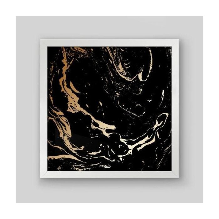 Quadro Abstrato Preto Dourado - 40x40cm - Moldura Padrão Branco
